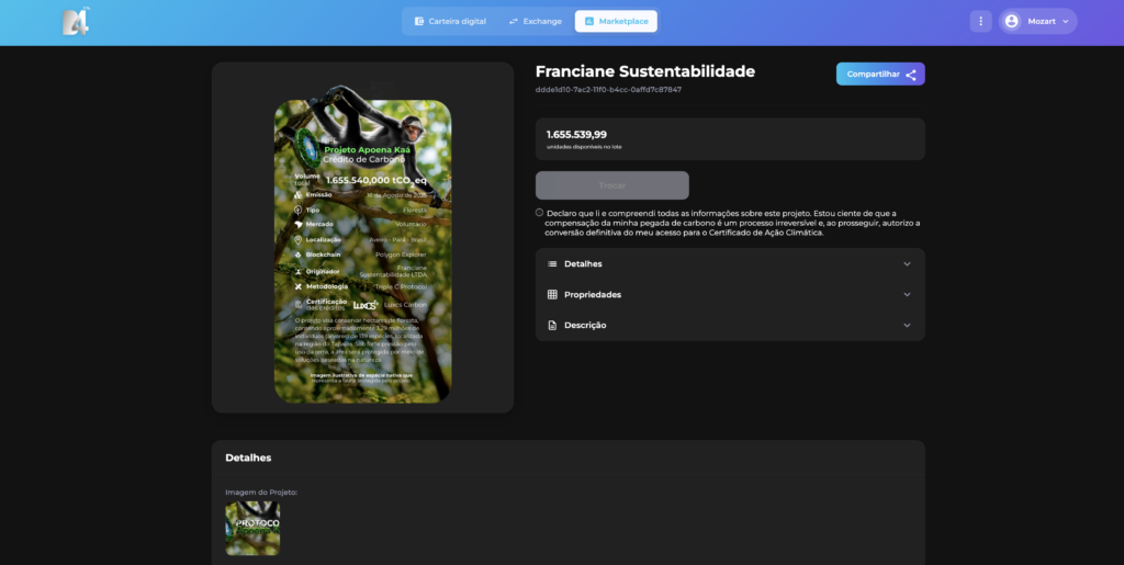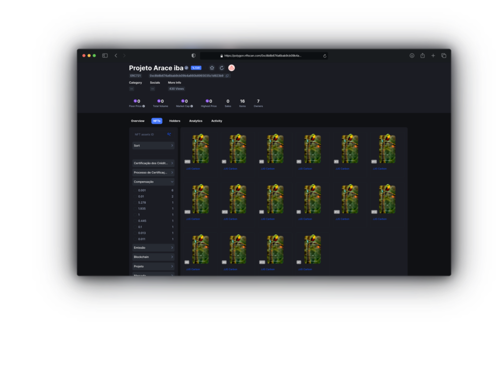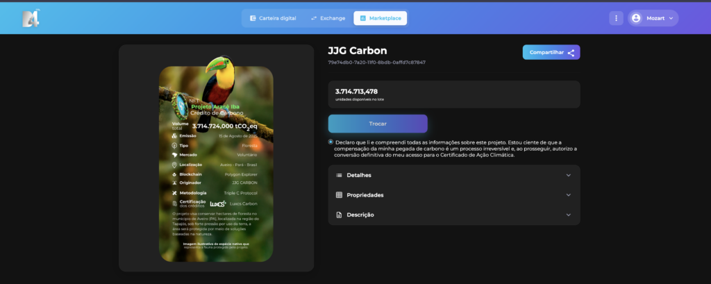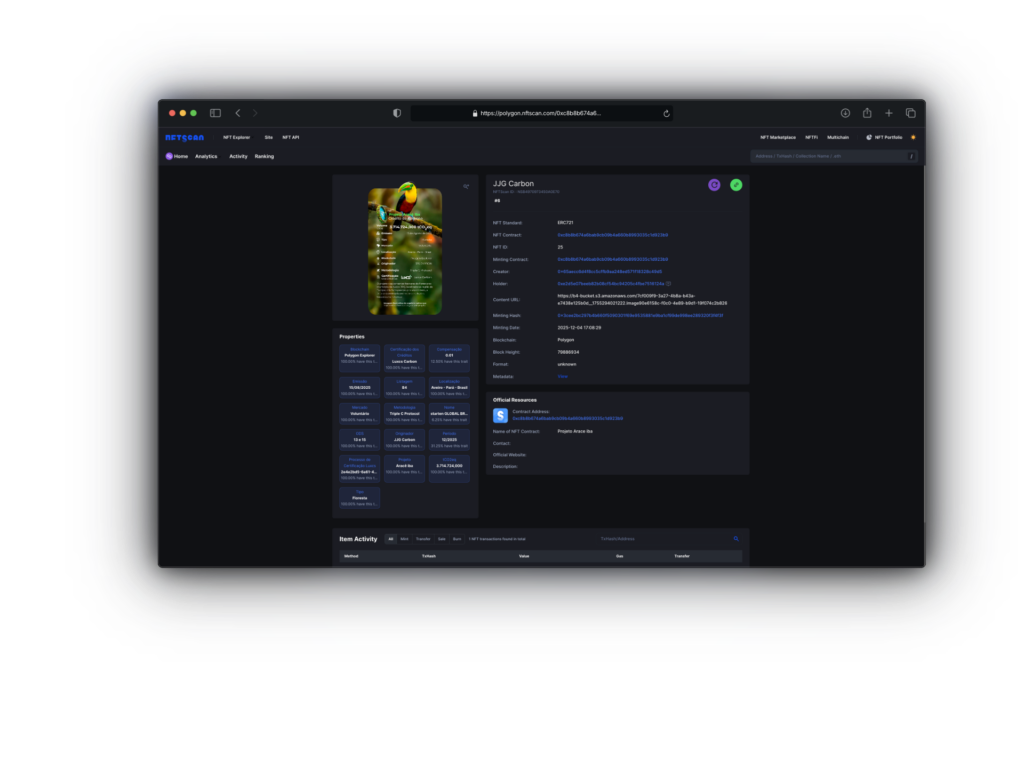3. Verifique a rastreabilidade do Crédito de Carbono em formato NFT.