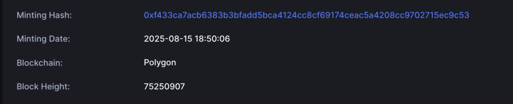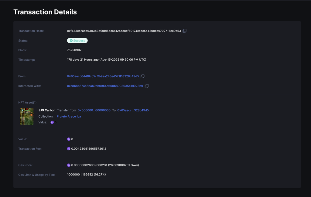 6. Visualize as informações de Registro do Certificado de Crédito de Carbono em formato NFT