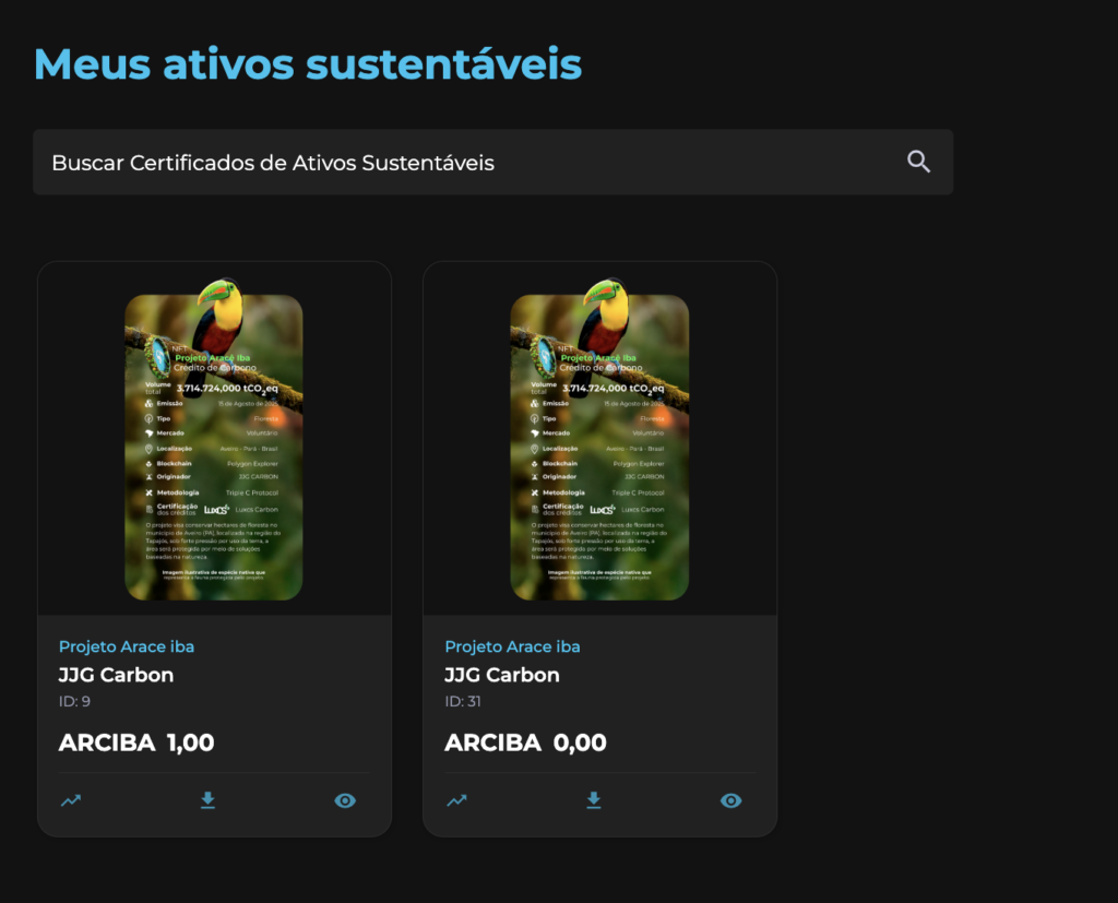 6.1 Quando uma empresa ou pessoa física compensar, fica registrado no seu perfil em “Meus Ativos Sustentáveis”