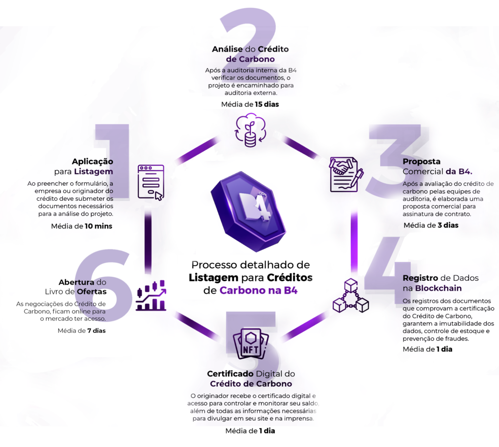 A blockchain utilizada pela a B4 transforma créditos de carbono em ativos sustentáveis totalmente rastreáveis, criando o mais alto padrão de transparência e confiabilidade do mercado brasileiro de carbono! 🌱🔗
