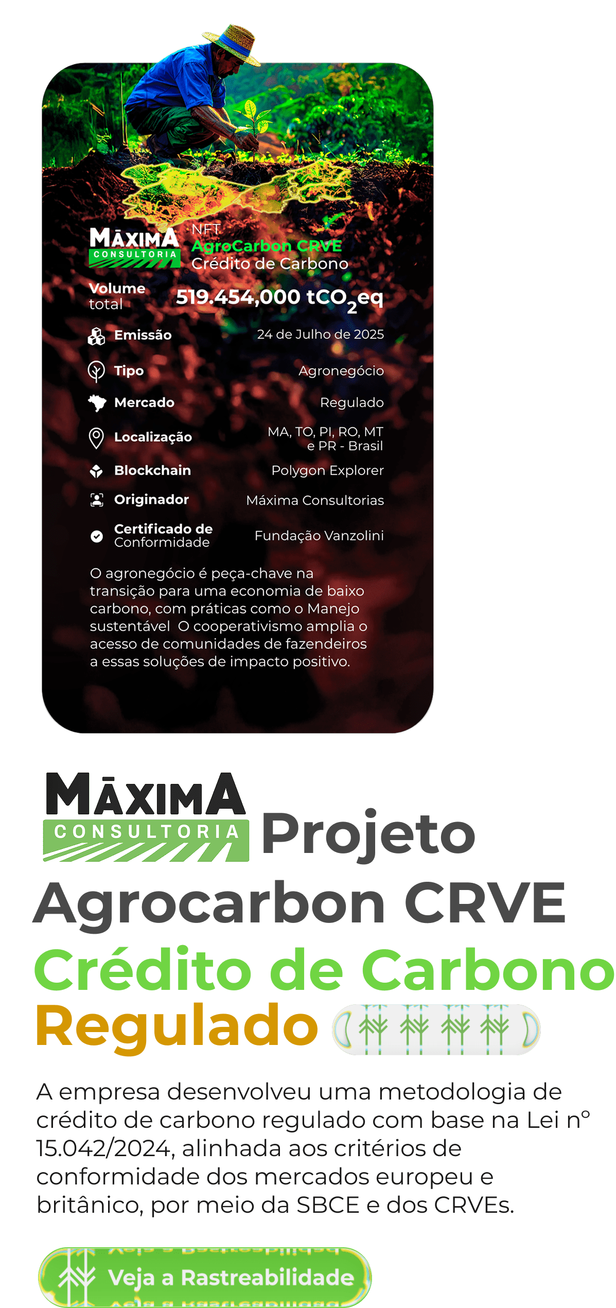 (Quinhentos e dezenove mil) toneladas de crédito de carbono do nicho de Agronegócio gerados